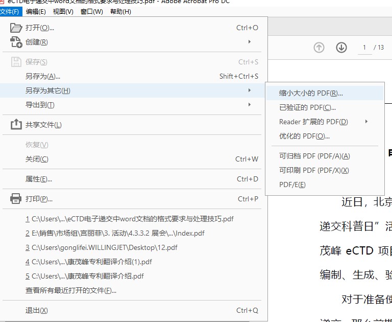 若不是1.4-1.7版本,可以選“文件-另存為其它-優化的PDF”,確定后替換原文件,即可保存為符合要求的PDF版本。
