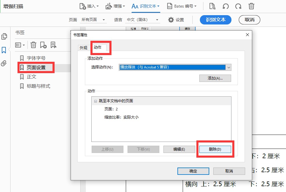 ICH規定將所有書簽屬性設置為“承前縮放”,點擊需要設置屬性的書簽,右鍵-屬性-動作-編輯-縮放,選擇“承前縮放”。